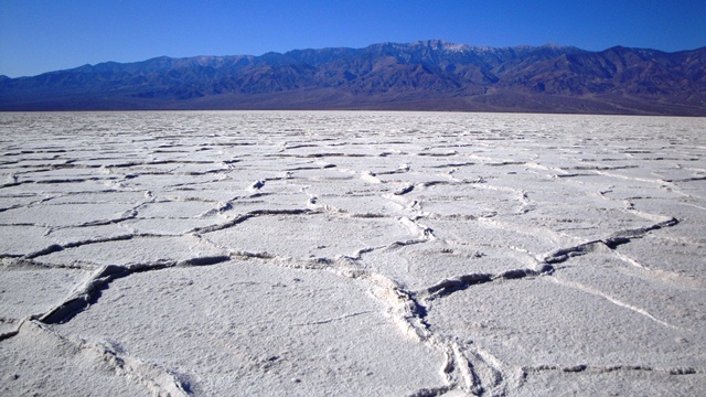 Loud crunching sounds came from under my feet as I wandered in awe at the Badwater Basin salt flats in Death Valley National Park. The clear blue skies created a unique contrast with the sharp peaks of the Panamint Mountains and bright white salt landscape that can be seen for miles. This is the lowest point in North America at 282 feet below sea level.